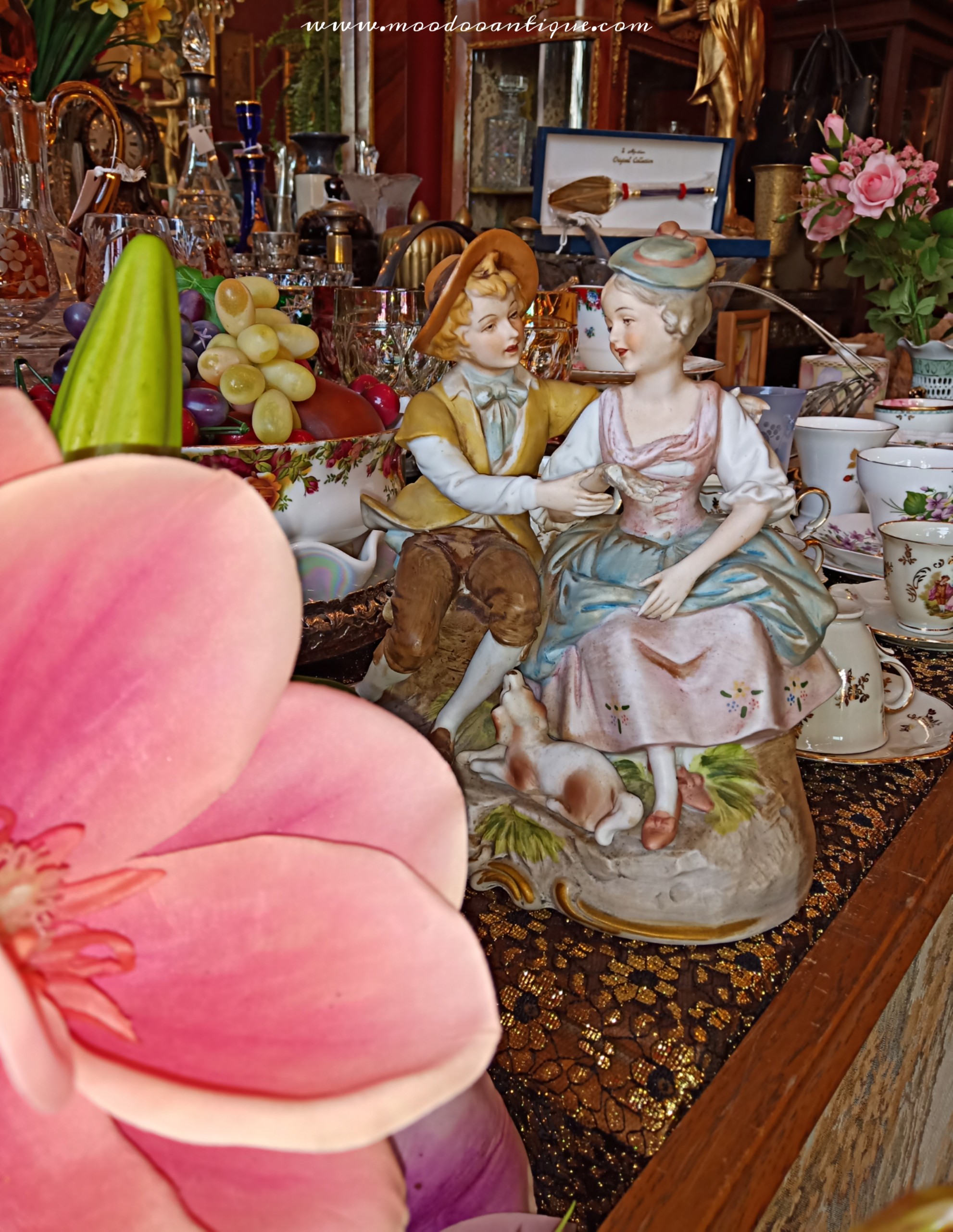 เชิงเทียนบรอนซ์รูปปั้นเทพีคู่จากฝรั่งเศส แบร์น L&F Moreau ศตวรรษที่ 19 แบร์นเก่าแก่ของฝรั่งเศสราคาค่อนข้างสูงเนื่องจากเป็นชิ้นงานที่ผลิตชิ้นเดียว ไม่ได้ผลิตออกมาเป็นล็อต นางก็ชอบจับไปตั้งตรงนูนทีตรงนี้ทีเพื่อที่จะถ่ายรูป แต่ถ่ายกี่รูปก็ไม่พอสักที ย้ายไปย้ายมาแล้วก็บ่นว่าหนัก (5555) แล้วก็ชอบถามว่าจะขายมั้ย? ส่วนตัวผู้เขียนอยากจะให้เชิงเทียนคู่นี้ประดับร้าน ทุกครั้งที่ลูกค้าเข้าร้านก็อยากให้ได้ชื่นชมความสวยงามของเชิงเทียนคู่นี้บวกกับไฟสลัวจากแชนเดอเรียริสตัลที่ตกลงมาสาดส่องเชิงเทียนเหมือนกับที่ผู้เขียนได้สัมผัส ขออนุญาตอวยนะคะ